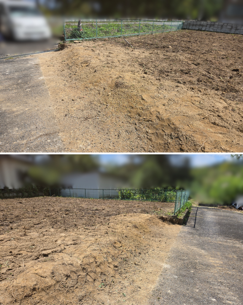フェンスと土留めの撤去後は、敷地内の雑草も取り除き、全体をきれいに整理して工事完了となりました^^