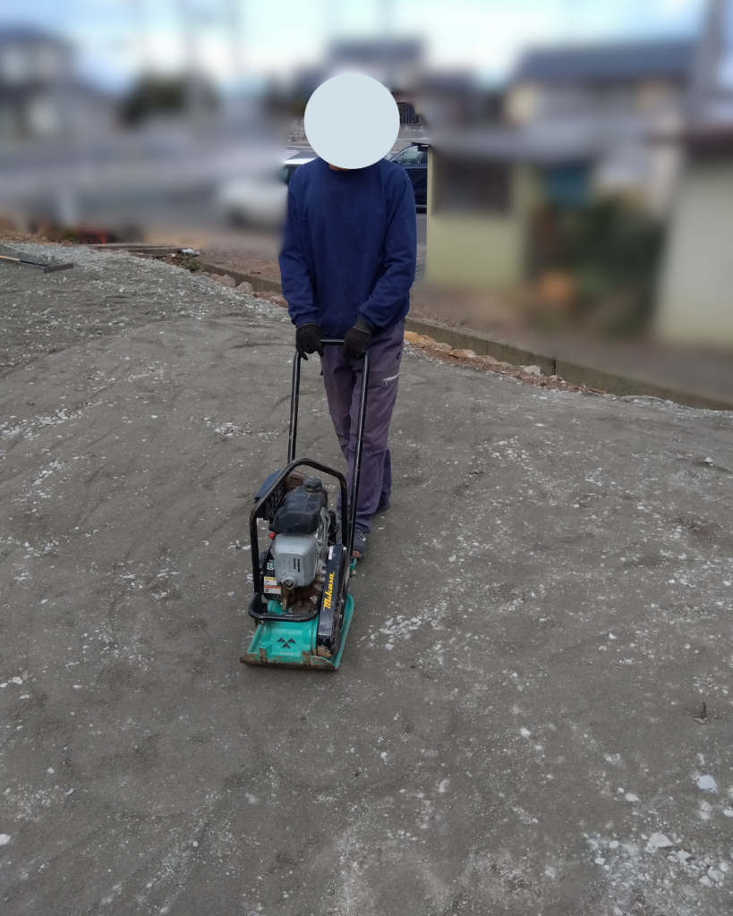 転圧作業も丁寧に行い、地盤をしっかりと固めております。