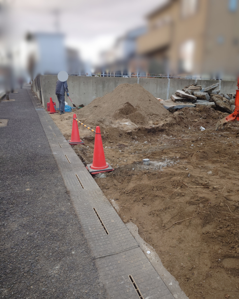 解体工事中は、車両の出入りによりどうしても周辺道路に土や泥が飛散してしまいます。