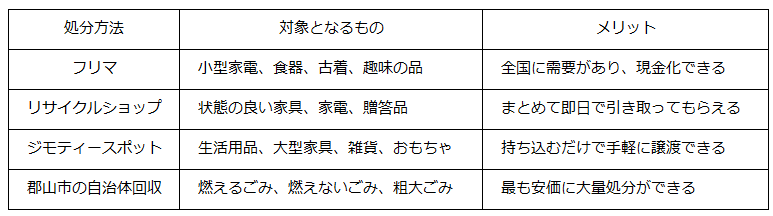 ご自身で運び出せる家具などは、郡山市の粗大ごみ受付センターへ事前に申し込みを行い、処分することができます。