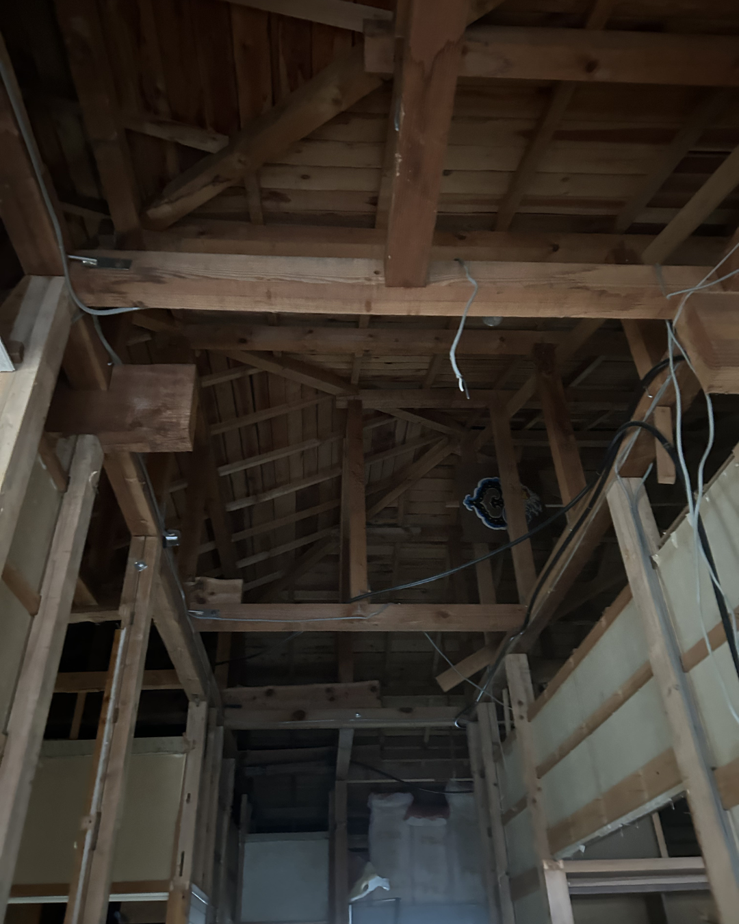 解体工事を安全に進めるため、着工前に専門スタッフによるアスベスト事前調査を行いました。 屋根材、外壁材、内装材など、疑わしい箇所を細かく検体採取し、分析調査を徹底。 近隣住民の皆様や作業員の健康を守るため、 しっかりと事前調査します!