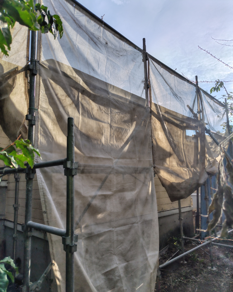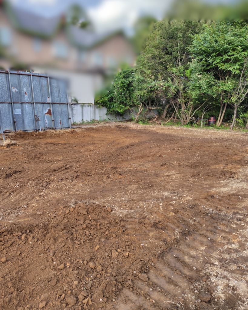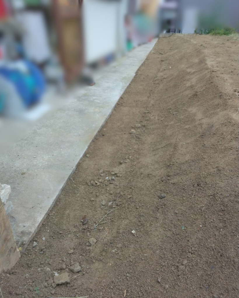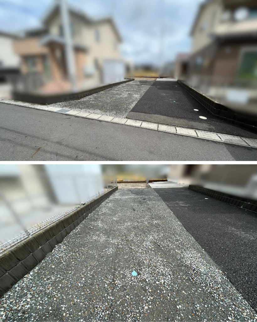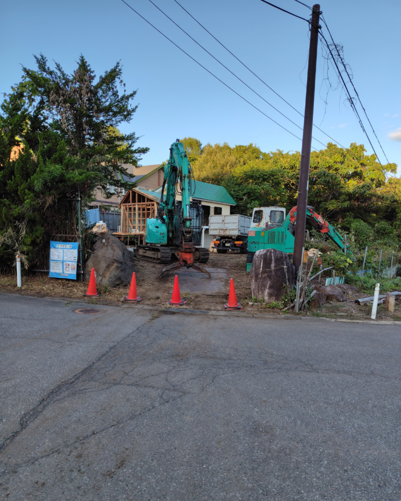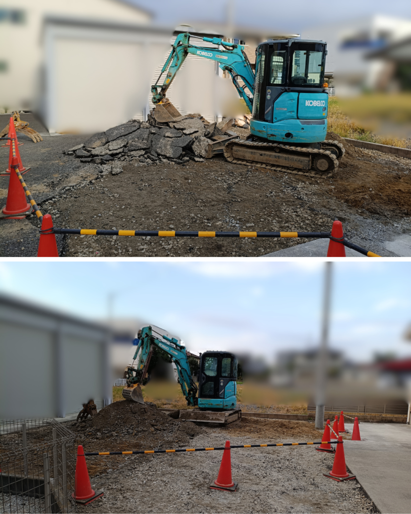 写真右側に見えるカーポートと、その左側のアスファルト部分の作業を進めていきます。