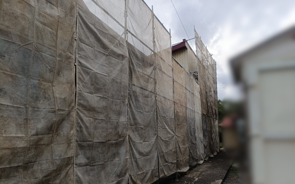 なお、カーポート周辺の土間コンクリートとアスファルト舗装部分は残す施工計画となっているため、